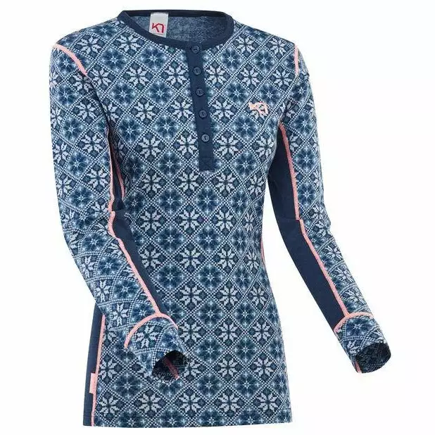 The Kari Traa Rose Long Sleeve is a 100% Merino wool women’s baselayer top with a feminine, Nordic-inspired design, a slim, sporty silhouette and an extra touch of classic style. Combining wool and 4-way stretch, it gives you ooh-factor next-to-skin comfort, natural odor-resistance and breathability. It rocks a relaxed round neck and old-school button closure in cool contrast colors. A must-have.